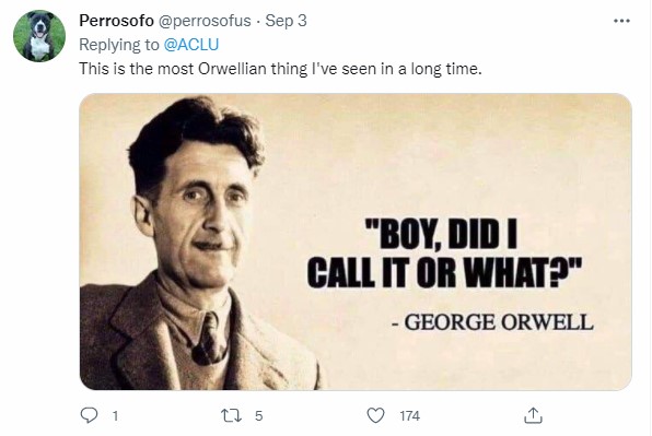 Apparently, without a shred of irony, the ACLU has just tweeted this.