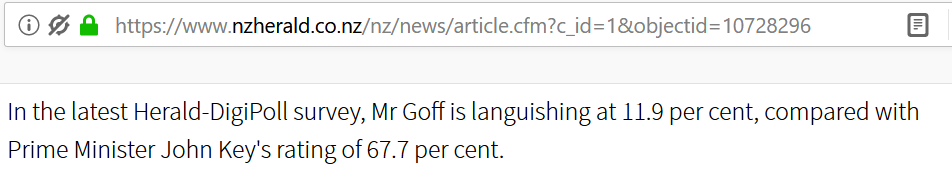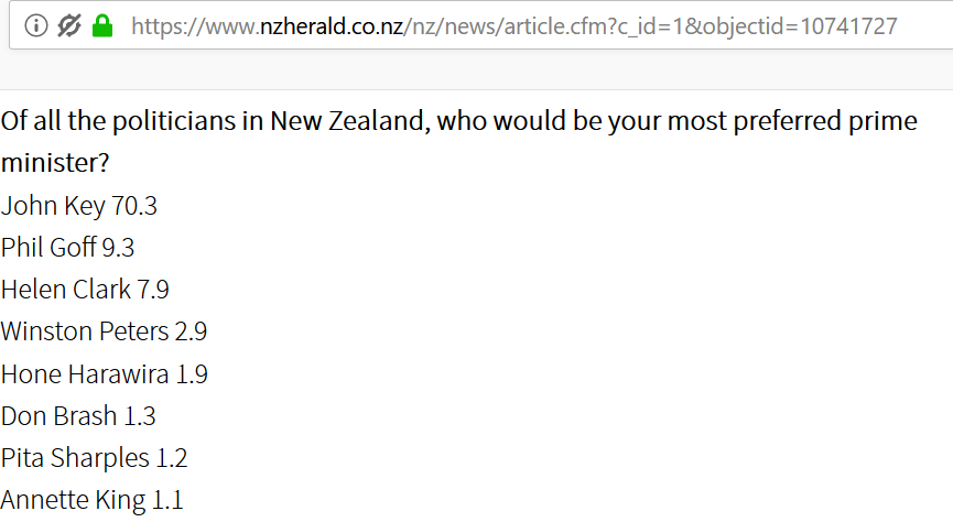 Also NZ Herald: National Prime Minister John Key at 70.3%, (less than than a century ago):