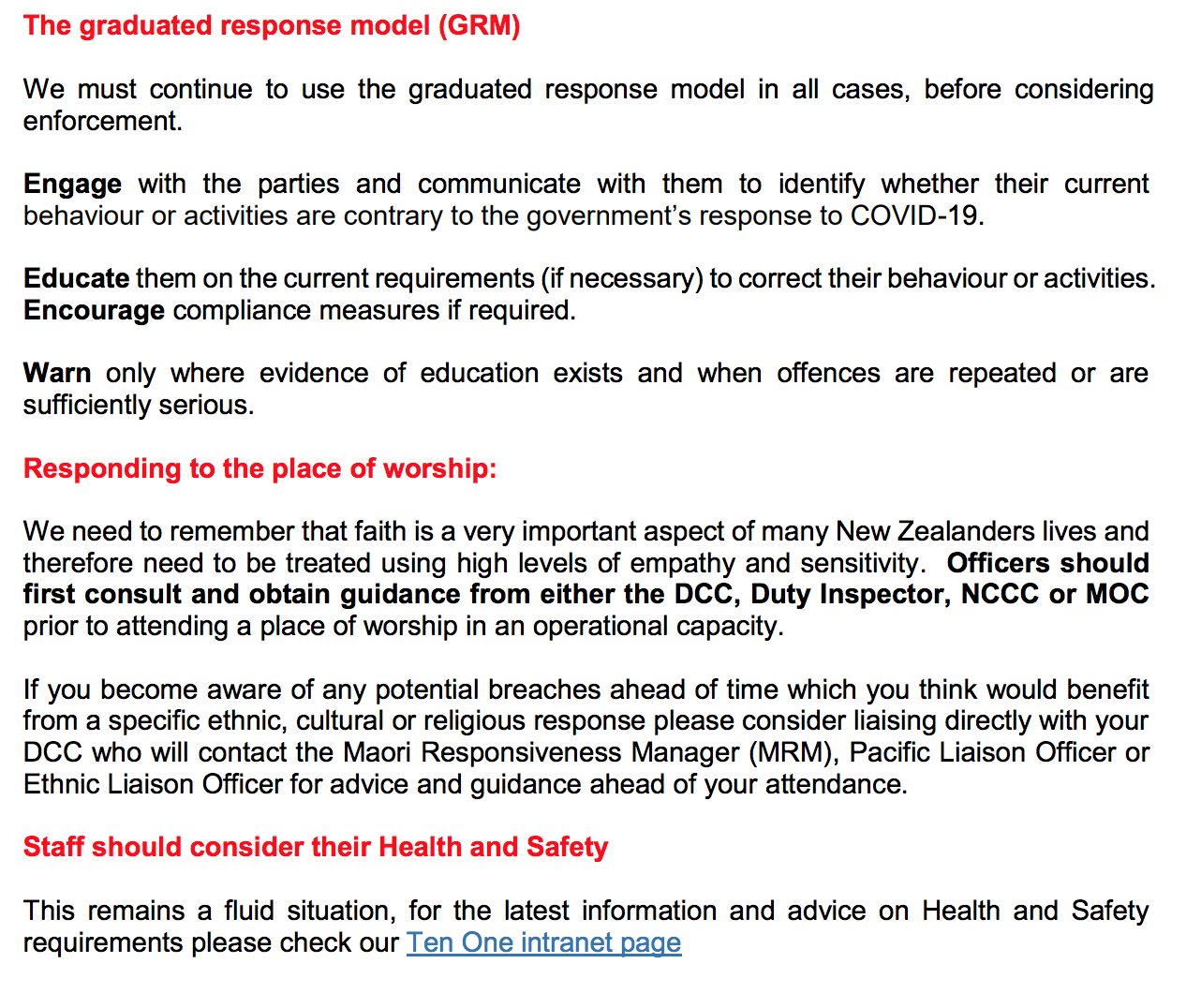 Depending on the size of a venue, multiple groups of 10 could be present at a service, provided that each group was 2m apart from each other and that each group complied with any record keeping requirements (depending on whether they were a lower risk gathering or a gathering of friends and whanau). This assumes that people involved do comply at all times with the distancing restrictions, and don’t for example mingle more widely at the end of a service. 20 May 2020 Family or whanau who reside together in their household may remain within 2 metres of each other.