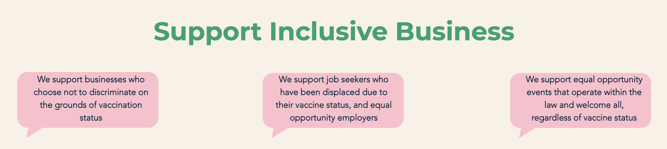 Support local businesses in your region that are uniting against discrimination and who welcome all customers and celebrate inclusion, diversity and equal opportunity – regardless of vaccine status