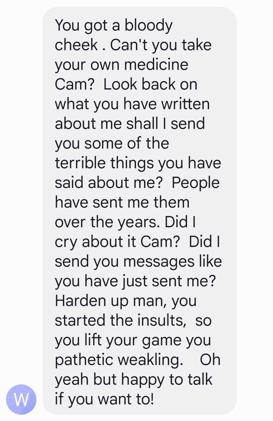 I have shared this with you to show that the man-child masquerading as a government minister is in reality a nasty, racist boor and bully with a churlish disposition.