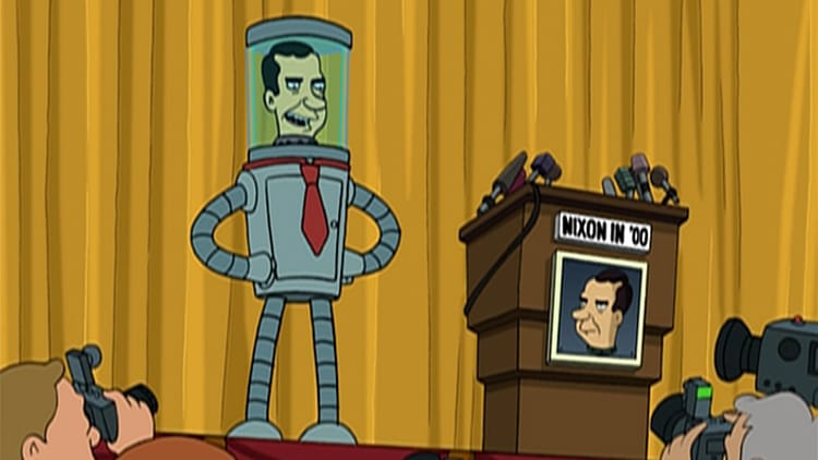 As my middle expands and my knees and back ache in ever-new and interesting ways, I often joke about looking forward to the future where I can transfer my brain to a robot body. Just like Robot Nixon! Take that, hippies!