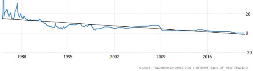 Since 1989, we have seen New Zealand interest rates coming down from the high teens toward zero.