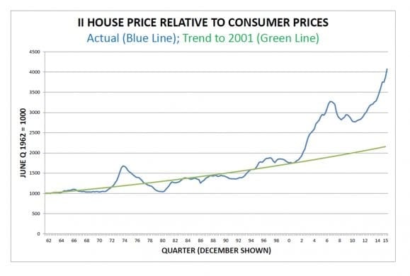 Since about 2000, when the population started to grow more rapidly, Kiwi homes have inflated far beyond the CPI: