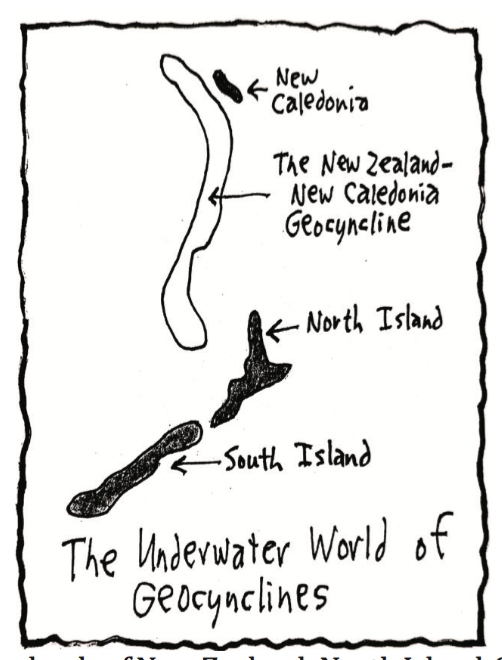 During the Rangitata-Orogeny Period (a mountain-making period), both the New Zealand part of Tasmantis and the New Zealand part of the Geosyncline were lifted up to create the three main islands of New Zealand: North Island, South Island and Stewart Island. It was really only a fluke that these two forces created these three islands all in a row that look similar but aren’t.