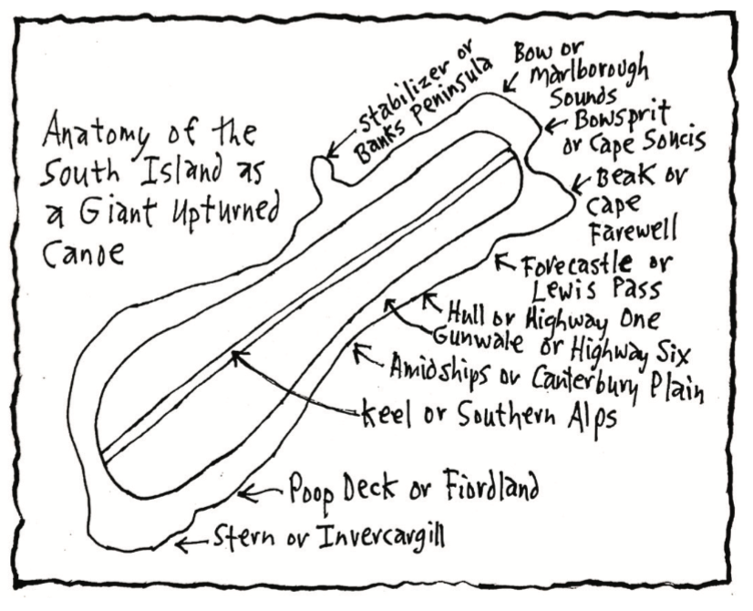 New Zealand, however, is not only both rising and sinking at the same time, it’s slipping sideways as well. The southwest corner of the South Island used to be along the same latitude line (east-west) as the northeast corner of the South Island; so the South Island is slipping around from the east-west position to the north-south position. At the same time, the Southern Alps of the South Island are still rising. This wholly unstable plate activity under New Zealand is what causes the earthquakes and volcanoes for which New Zealand is famous.