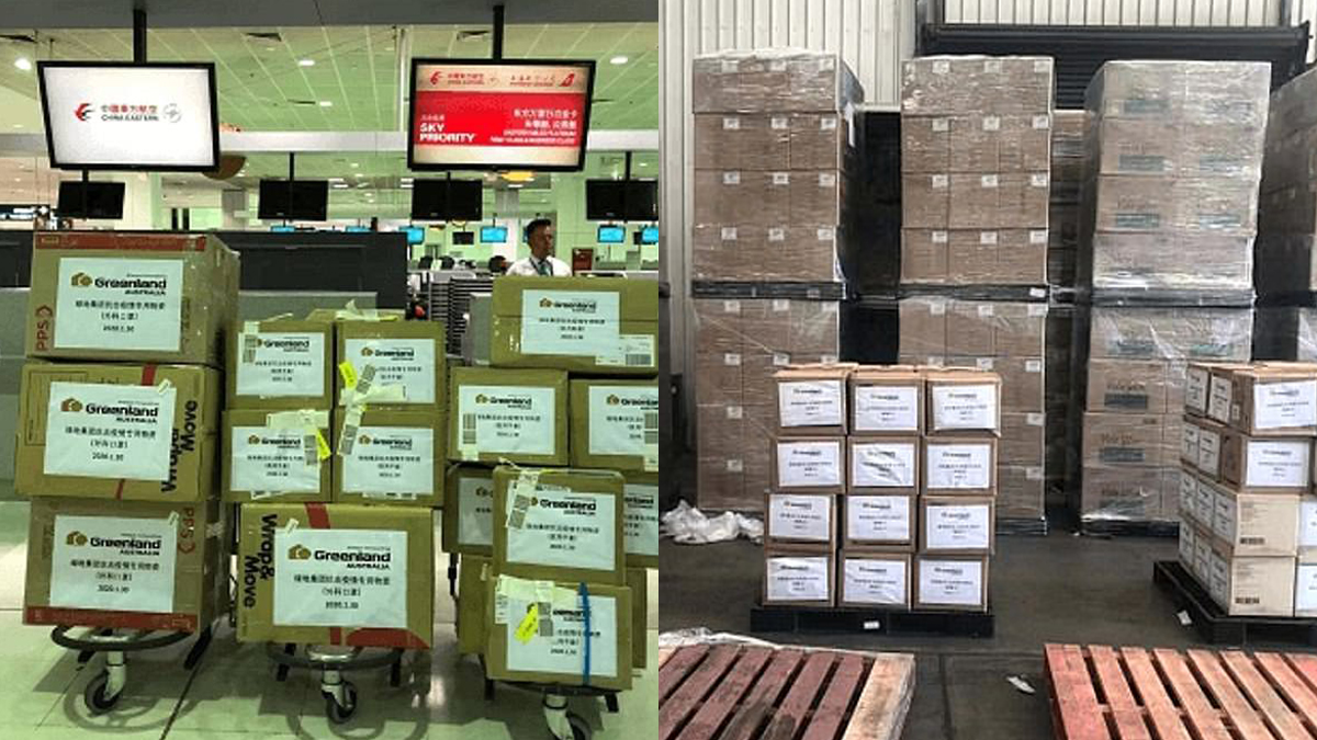 Greenland Group told Chinese language media in Australia the company collected three million protective masks, 700,000 hazmat suits and 500,000 pairs of medical gloves during the global effort.