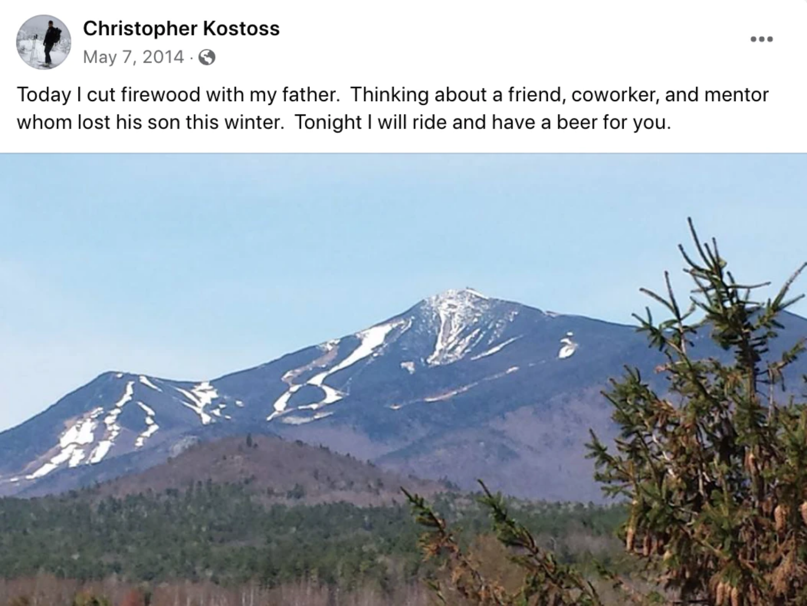 Imagine my shock to search for Chris’ name while sitting down for my morning coffee. In the autofill I began to see “Chris Kostoss obituary” and “Chris Kostoss suicide”.