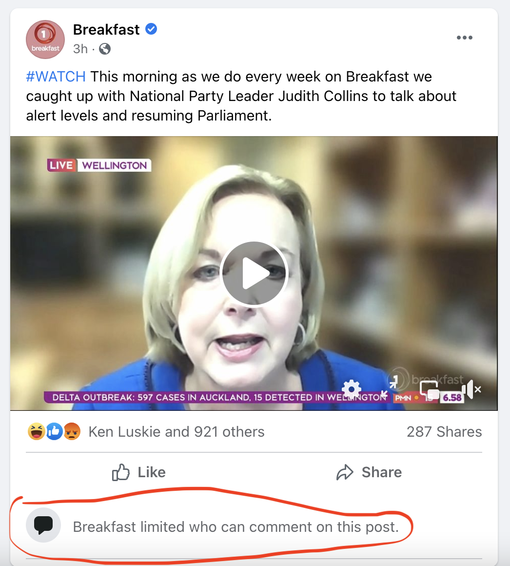 Although most of the media commentators, apart from Barry Soper, shot down Collins for sticking up for herself in the face of a series of personal attacks, parodying as serious journalism; the word is that TVNZ took down their Facebook comments which showed praise for Collins and criticism for their journalist’s mishandling of the interview.