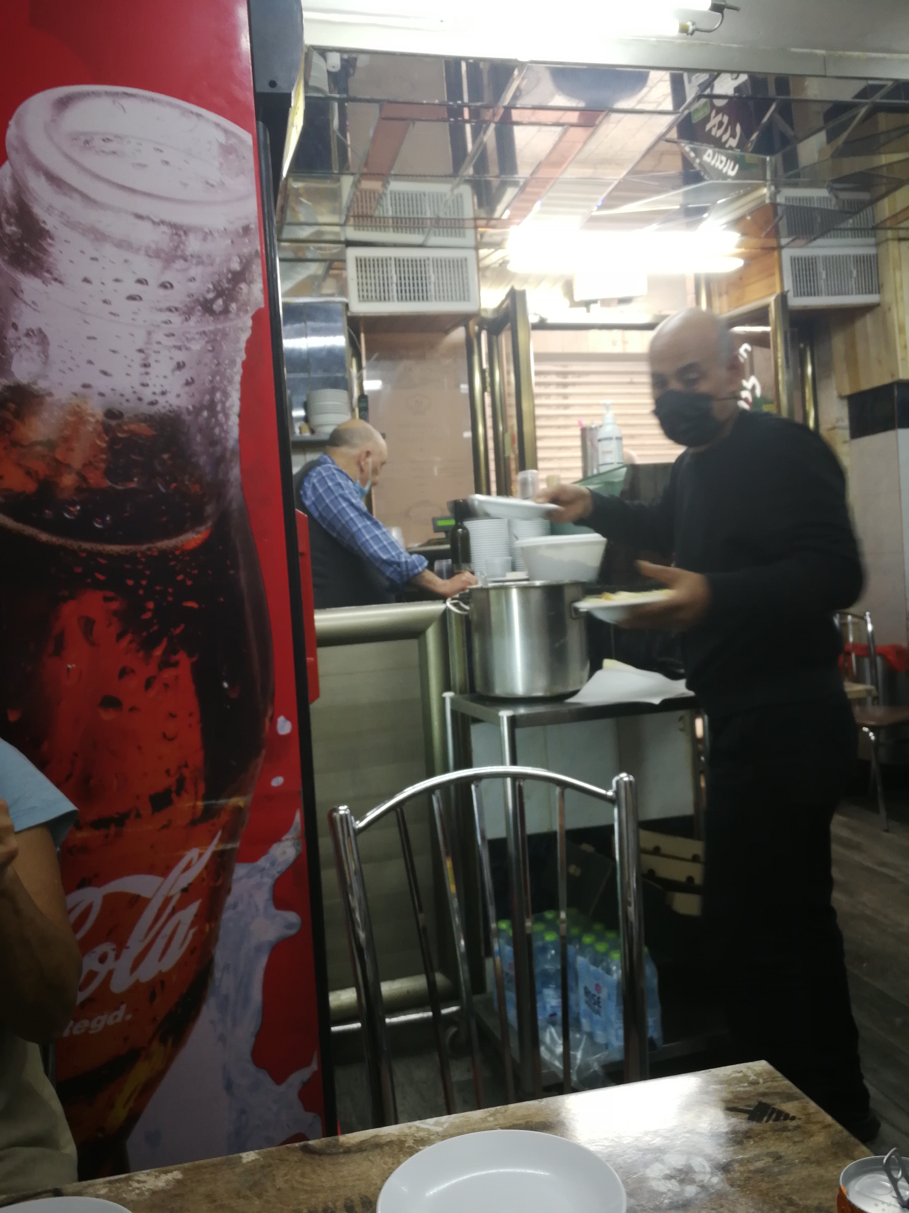 Inside ‘Lena’ it’s a family affair, older bearded and moustached staff attended their stations. By age their roles were defined. The dispenser of hummus and operator of the till being the eldest, then the unsmiling waiter who never writes anything down, nor receives a tip. Then the unseen cooks, ‘wallads’ (boys) in the kitchen. Cleanish formica tables, four at a squeeze, embellished with a red Coca Cola napkin dispenser, limited menu dating to the British mandate, unchanged since 1922. Heaven, a full spread awaited us. Warm hummus with fava beans, fresh pita bread, hot falafel and Israeli/Arab salad never tasted so good with the exception of the soggy and oily chippies ordered by Eitan, a glitch or reflex by him I think. All of this, plus the much-missed ambience marked for us with absolute and definitive certainty that the Corona affair had been put behind us.