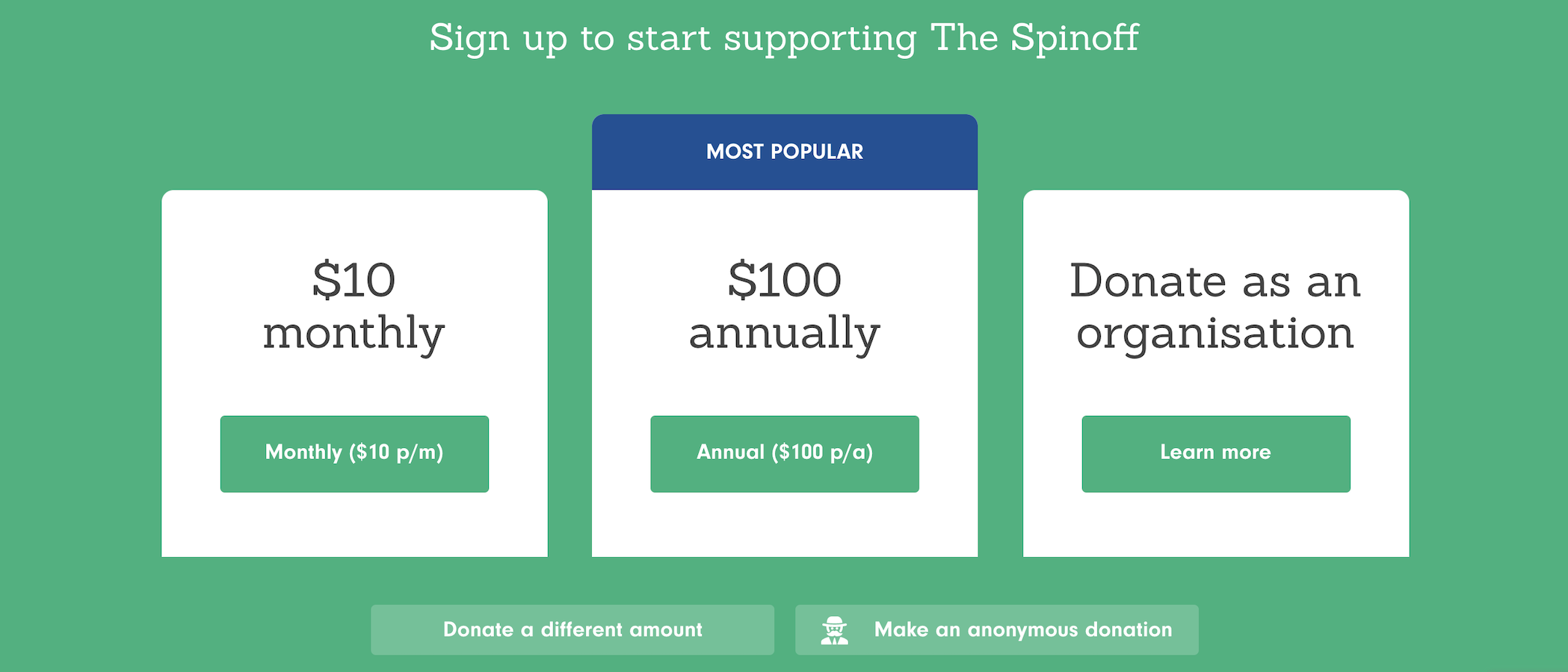 The Spinoff has a similar-sized audience to The BFD but the similarities end there. The BFD is funded 95% by our 1600+ members and 5% by our advertising revenue.