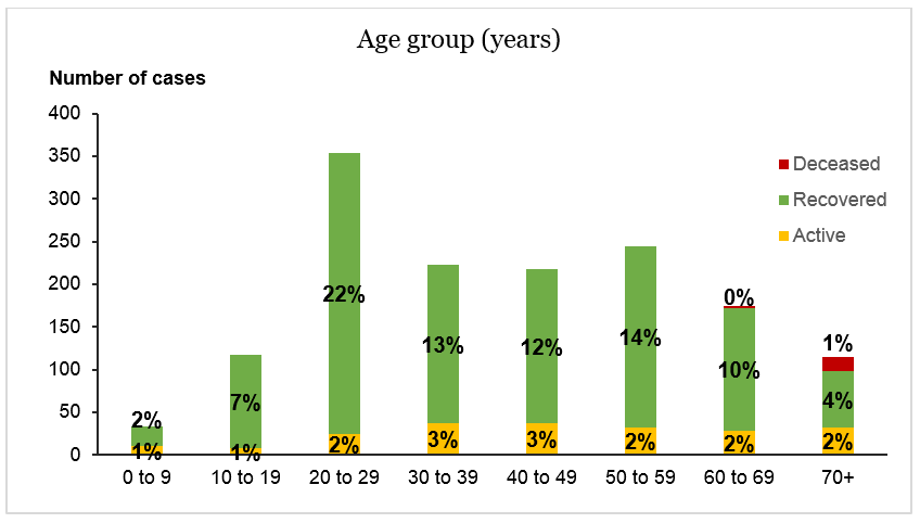 | Age Group | Active | Recovered | Deceased | Total |