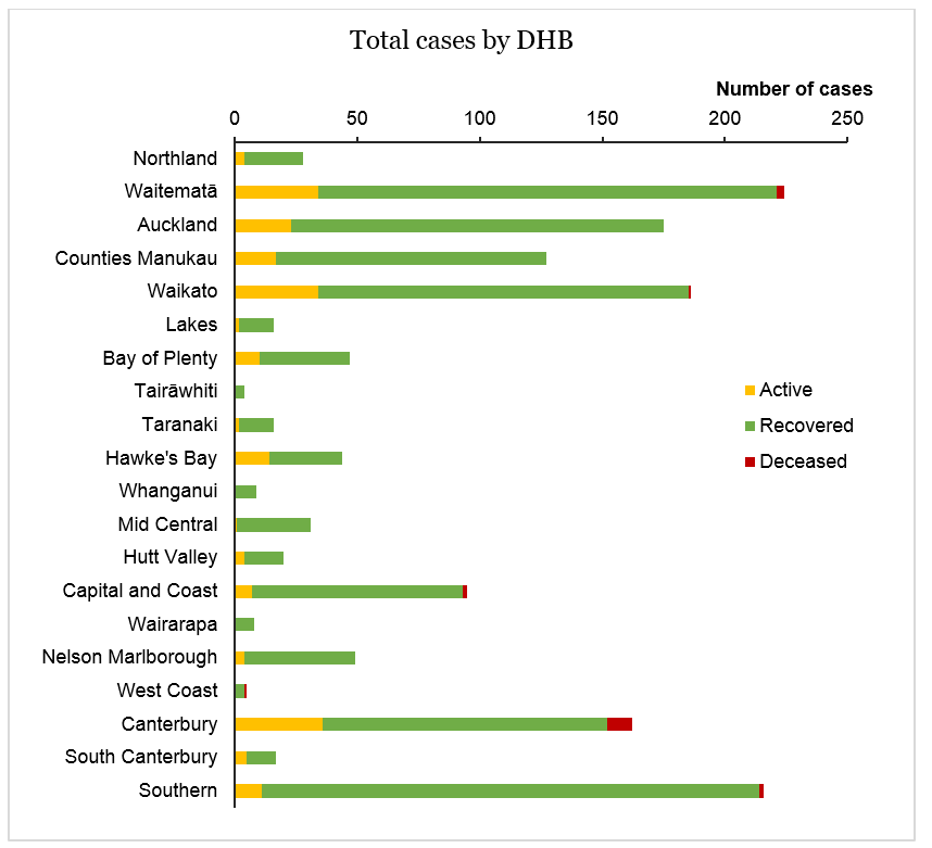 | DHB | Active | Recovered | Deceased | Total | Change in last 24 hours |