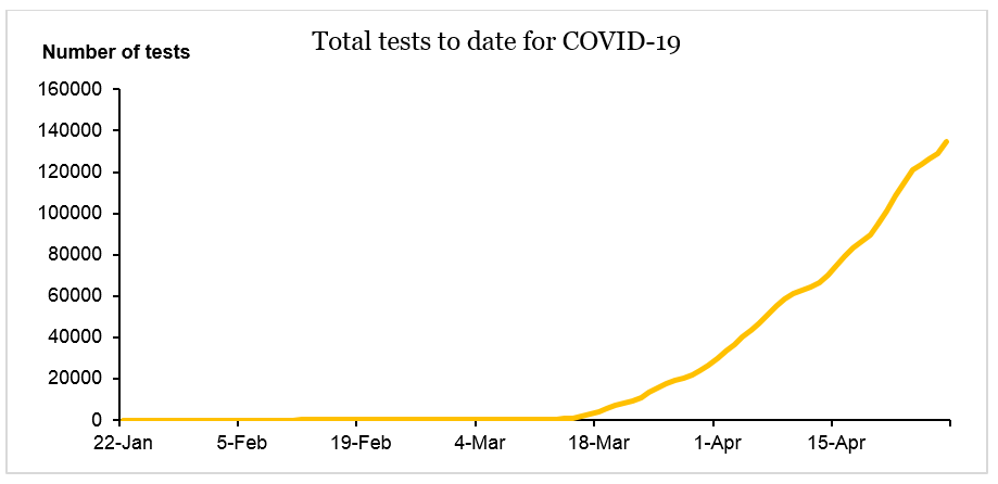 | Total tested to date | 139,898 | 22 January to 30 April 2020 |
