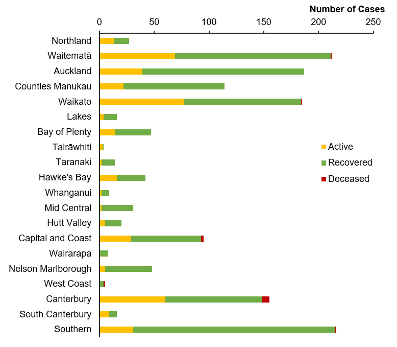| DHB | Active | Recovered | Deceased | Total | Change in last 24 hours |