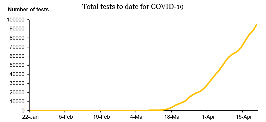 | Total tested to date | 94,797 | 22 January to 21 April 2020 |