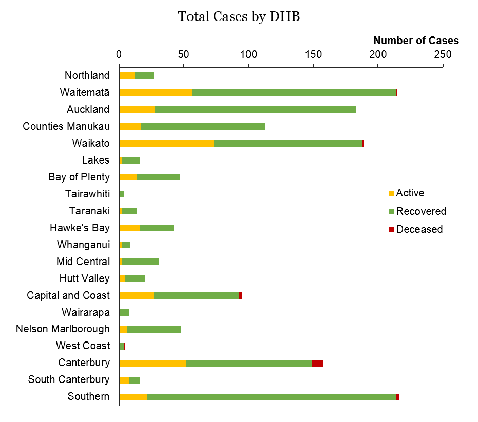 | DHB | Active | Recovered | Deceased | Total | Change in last 24 hours |