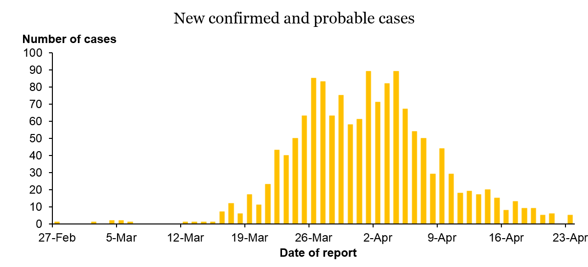 Note: One of the 8 in hospital is in ICU as at 9:00am 24 April 2020