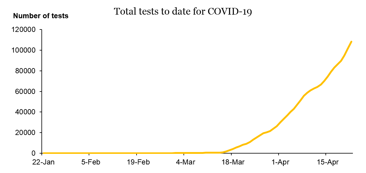 | Total tested to date | 108,238 | 22 January to 23 April 2020 |
