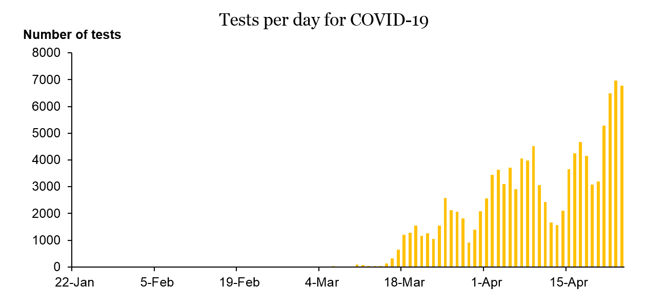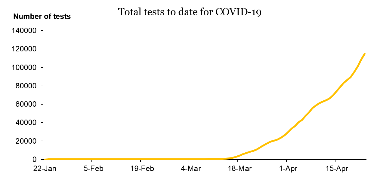 | Total tested to date | 115,015 | 22 January to 24 April 2020 |