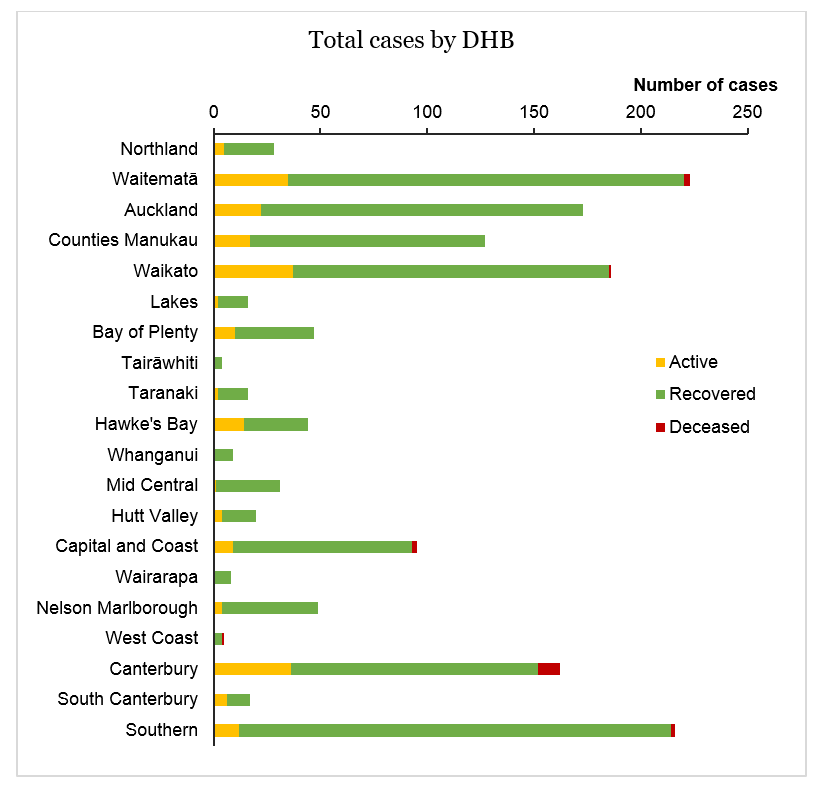 | DHB | Active | Recovered | Deceased | Total | Change in last 24 hours |