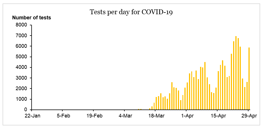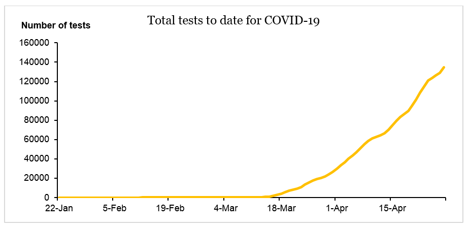 | Total tested to date | 134,570 | 22 January to 29 April 2020 |