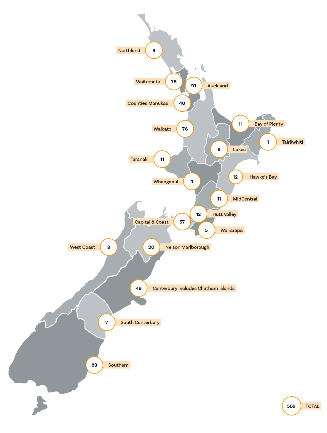 Download the Map of confirmed and probable cases by DHB (PDF, 282 KB).