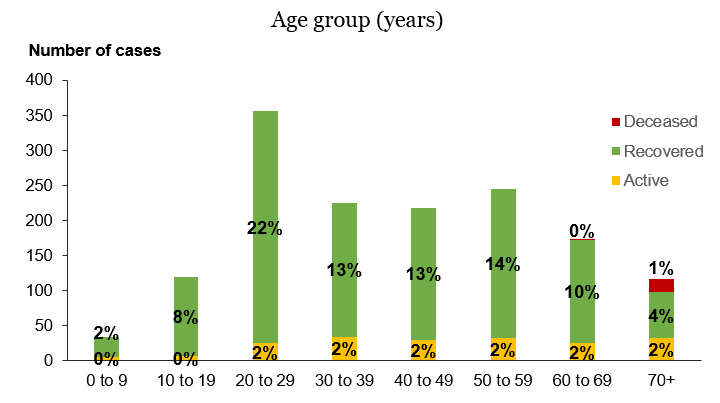 | Age Group | Active | Recovered | Deceased | Total |