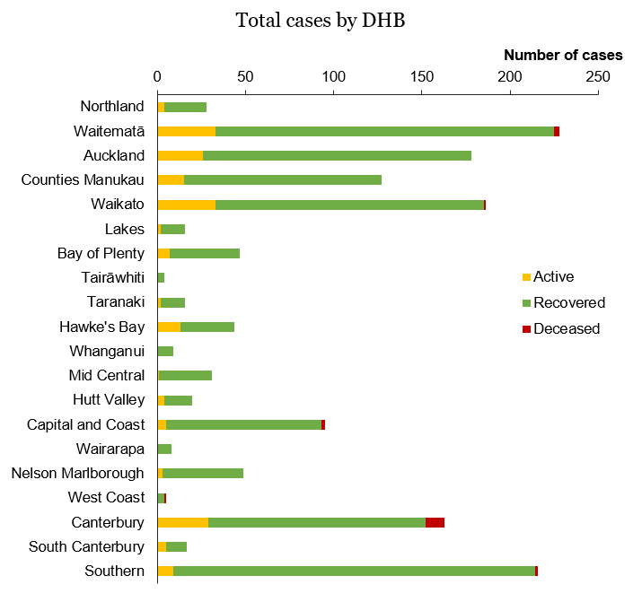 | DHB | Active | Recovered | Deceased | Total | Change in last 24 hours |