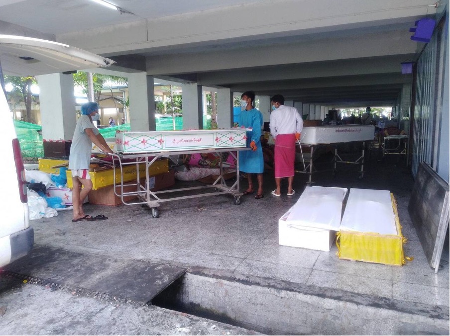 As charity groups providing free funeral services are overwhelmed, those providing ambulance services have to help with transporting the dead to cemeteries in Yangon. But even finding enough ambulances has become difficult, the charity workers said.
