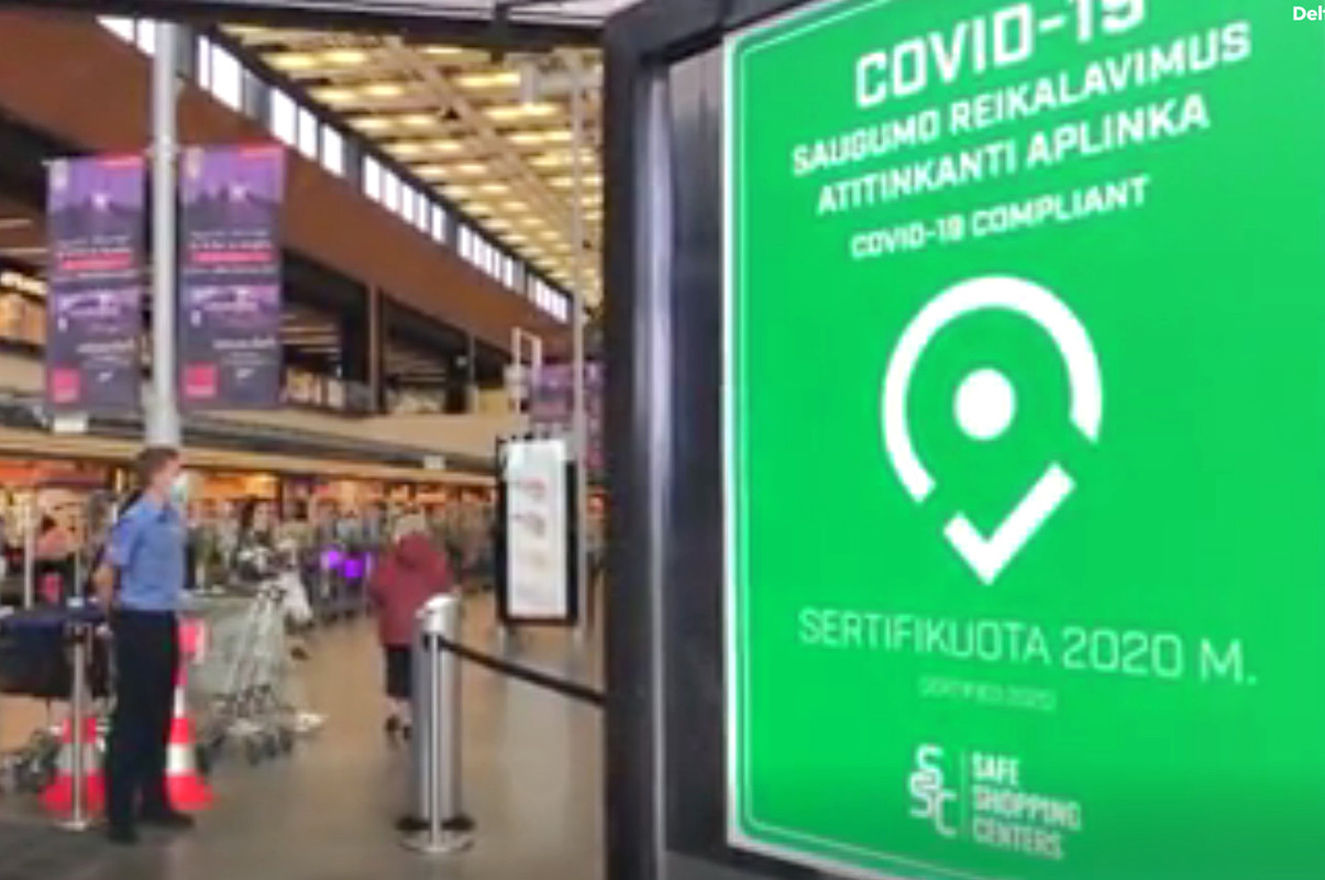 Here’s how it looks in practice (pictures from 13-Sep-21 at the entrances of Lithuania’s largest shopping mall and a large supermarket).