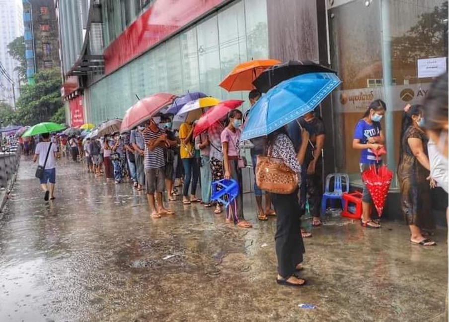 As the monsoon starts in Myanmar, queues still form at ATMs as people are desperate to access cash.