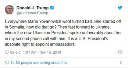 3. Trump Tweets, Yovanovitch Responds