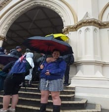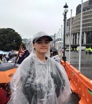 I came across a young mum with her one year son Rowan who had travelled from Auckland to stand in Parliament grounds. Rowan is only one and this is not his first protest. His mum would far rather be at home in Auckland than fighting for Rowan’s future in the bucketing rain.