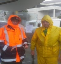 Colin and Carl from Tokoroa battled Cyclone Dovi because their jobs are in danger of being mandated. They are going to return with a bigger group. We are all going to return with a bigger group.