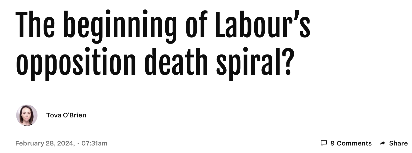 Political journalists and commentators are often prone to examples of exaggeration. Tova O’Brien is one of the worst, but it is understandable when you work for a niche publication that is so close to failing that its staff resort to calamitous exaggerated headlines to attract readers to their dross.