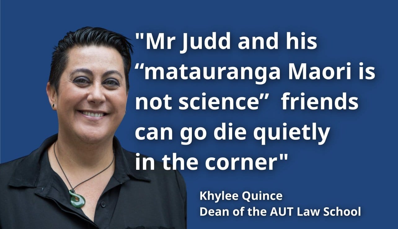 “As Judd KC points out in his complaint – tikanga is not law. Law students should not be force fed this kind of woke indoctrination from some culture warrior’s slanted version of what tikanga means. What is most concerning is the Dean of the AUT Law School, Kylee Quince, funded by the taxpayer, decided to typically stoop to a gutter level and call Judd an ‘old racist dinosaur’ who should ‘die quietly in the corner’. This is from someone who is in charge of teaching our law students” Peters said.