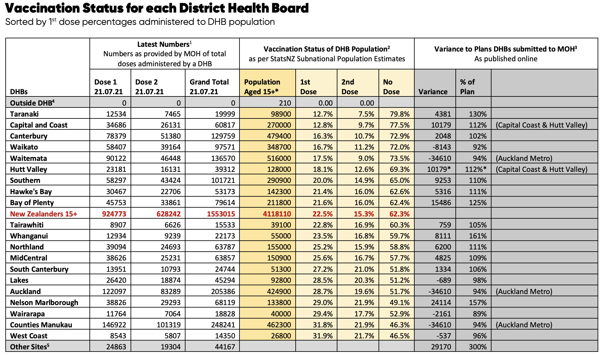 3 As published by the Ministry of Health, Cumulative vaccination plan for DHBs, health.govt.nz/our-work/diseases-and-conditions/covid-19-novel-coronavirus/covid-19-data-and-statistics/covid-19-vaccine-data