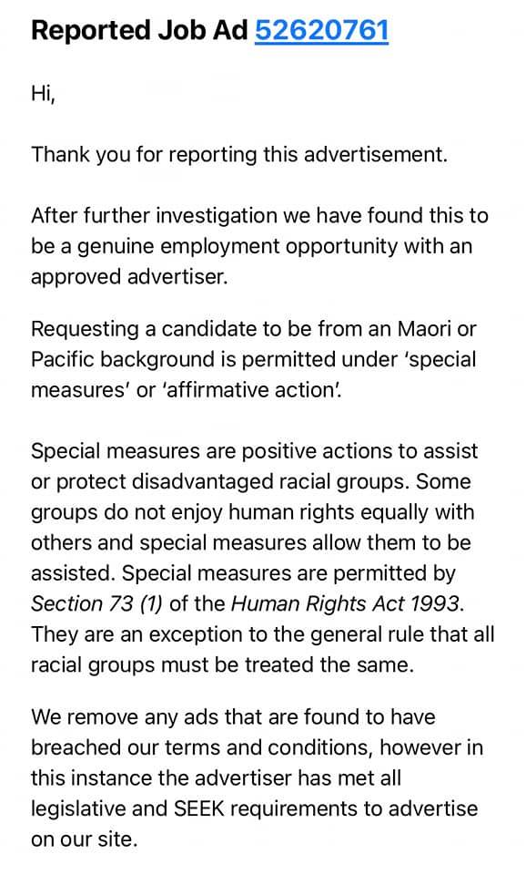 Here in New Zealand, we have an insane situation where on the one hand the Labour government want to take away our free speech in order to prevent any kind of discrimination against protected victim groups, but on the other hand, they are forcing their contractors and government departments to discriminate against job applicants from every other ethnic group in New Zealand in order to fill government-mandated Maori and Pasifika quotas.