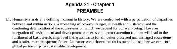 The 17 UN Sustainable Development Goals (SDGs) stem from Agenda 21 (now Agenda 2030) which was written in 1992 under the guise of health and environmental protection. Malthusian ideology is at the core of Agenda 21. This is the belief that with too many humans on the planet, resources will be depleted, leading to disaster and misery.