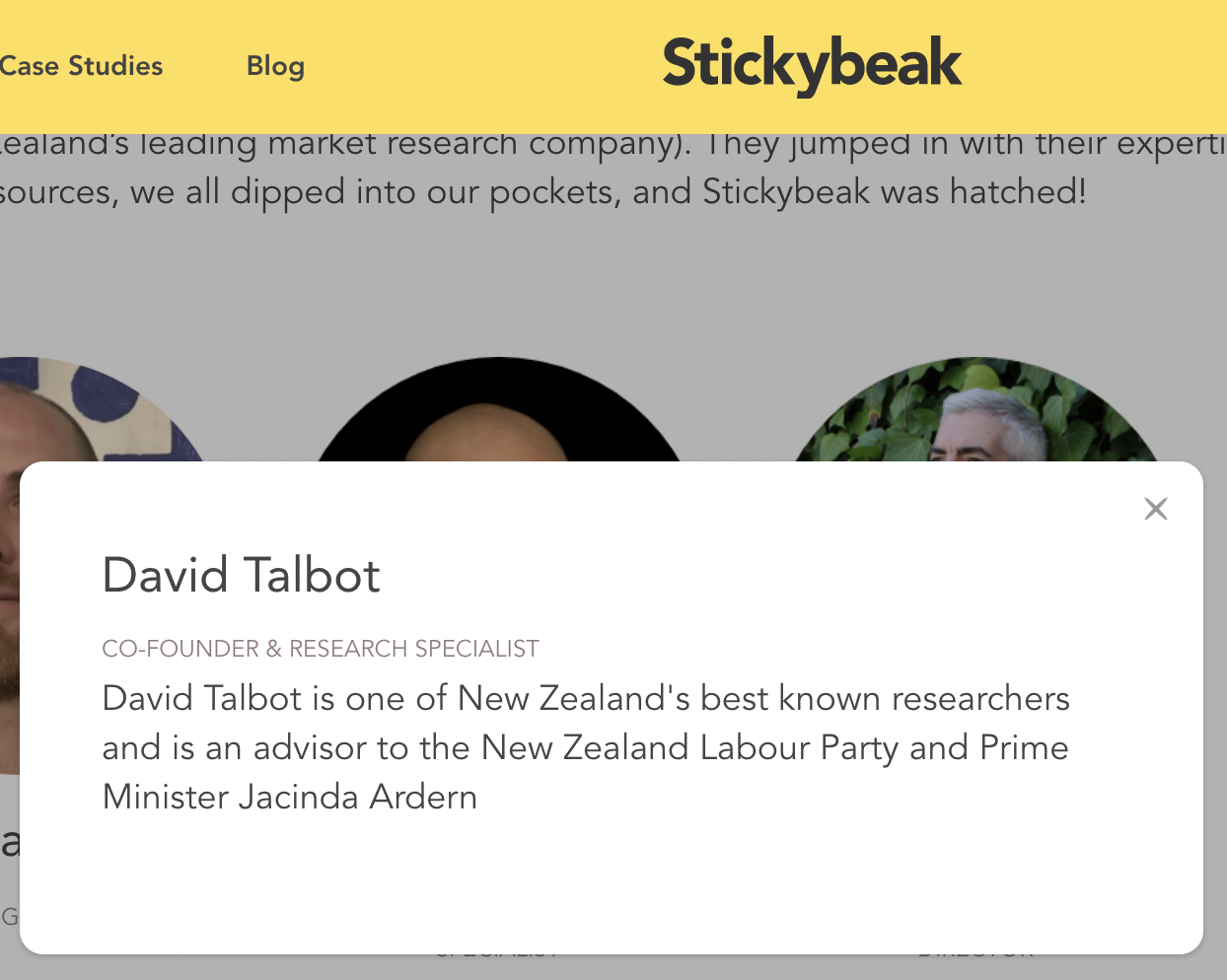 This is where it gets interesting as one of the founders and researchers is David Talbot who just happens to be “one of New Zealand’s best known researchers and is an advisor to the New Zealand Labour Party and Prime Minister Jacinda Ardern“.