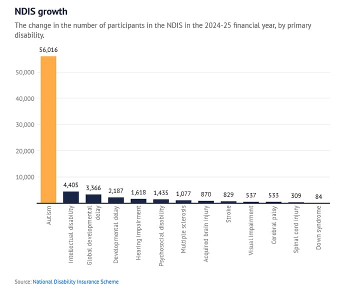 An analysis of government data by this masthead reveals that 56,000 of the 78,600 participants who signed up to the NDIS between June 2024 and June 2025 had autism as their main diagnosis. It brings the total number of people using the NDIS for autism support to 295,000 – about 40 per cent of the scheme’s 740,000 participants […]
