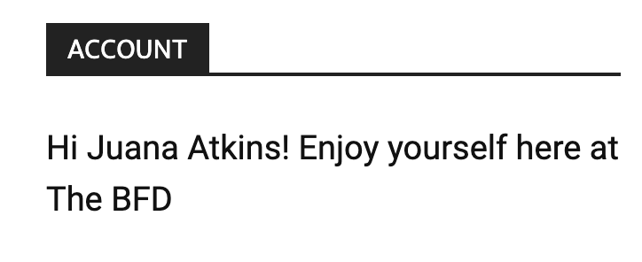 You can tell when you have successfully logged into The BFD because you will see a personal message like the one below welcoming you to The BFD.