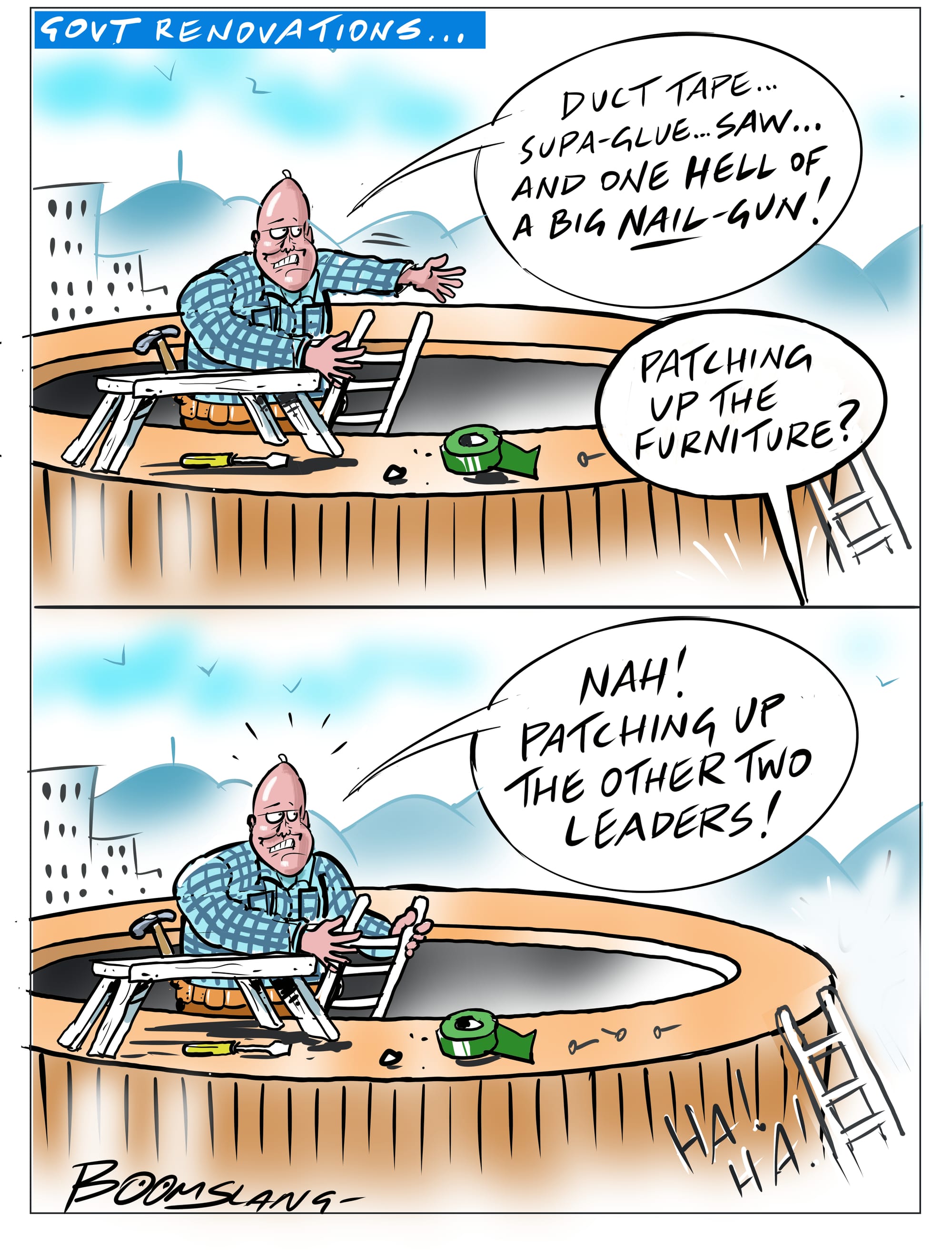 Govt renovations. Cartoon credit BoomSlang. The BFD