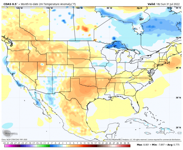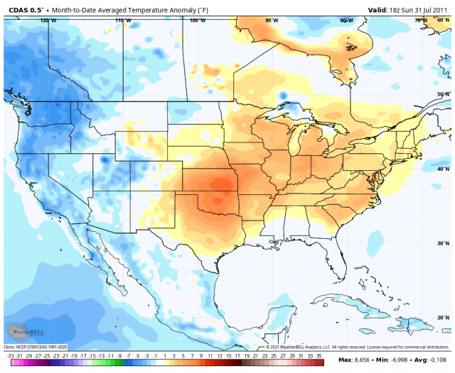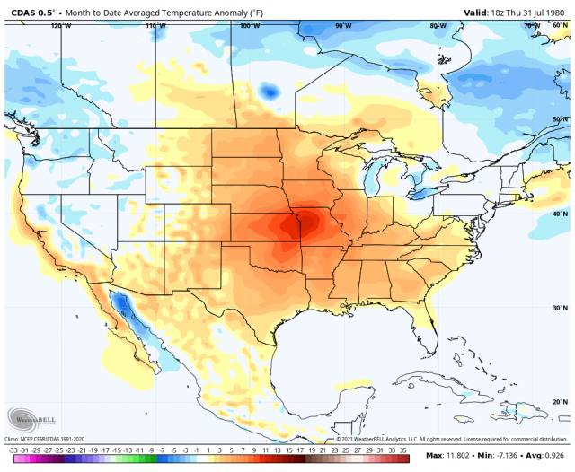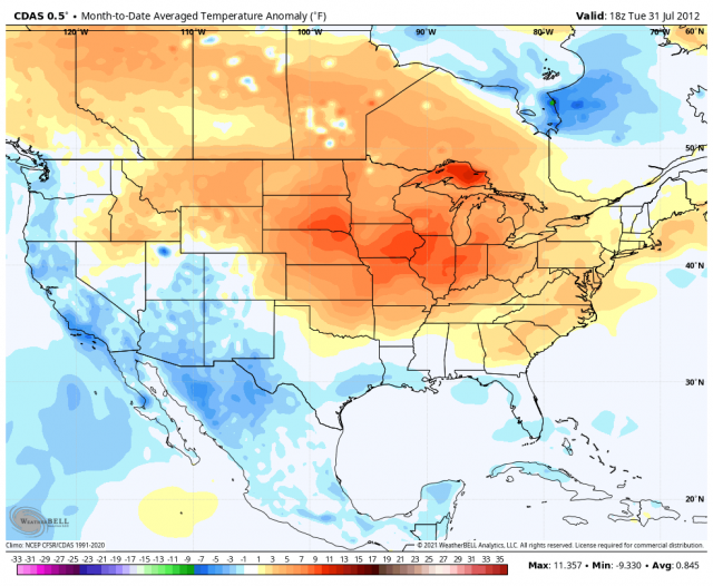 Here is the headline from the Daily Mail: REVEALED: The satellite images that show how triple-digit temperatures blanketed the US in July, putting 150 MILLION Americans under extreme heat warnings and killing dozens.