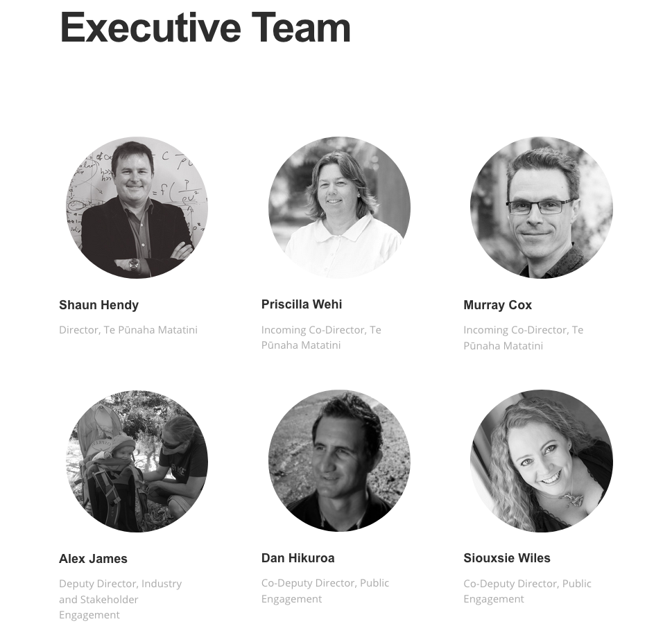 There are more links too. The Hendy report, so loved by the Prime Minister, was created by Te Punaha Matatini, which uses the lofty slogan “Data, Knowledge, Insight”. And who do we find on the Executive Team of that organisation?