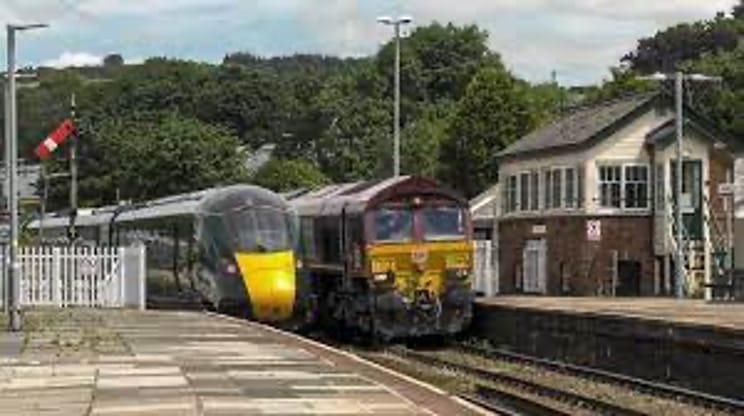 Shown in the picture is a cross-country train, probably from Penzance to Newcastle, and one of the freight trains carrying China clay to the local port for export.