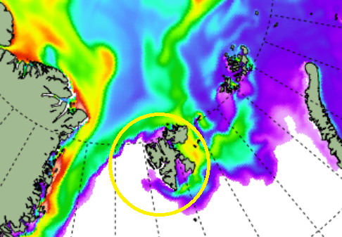 The western side of the Svalbard Islands archipelago is seriously icing up, and we’re only very early into the ice season. This is unheard of during an Atlantic ‘warm’ phase and hasn’t occurred so far this century. The ocean temperature west of Svalbard is ‘normally’ 5-7 degrees, way too warm for ice.