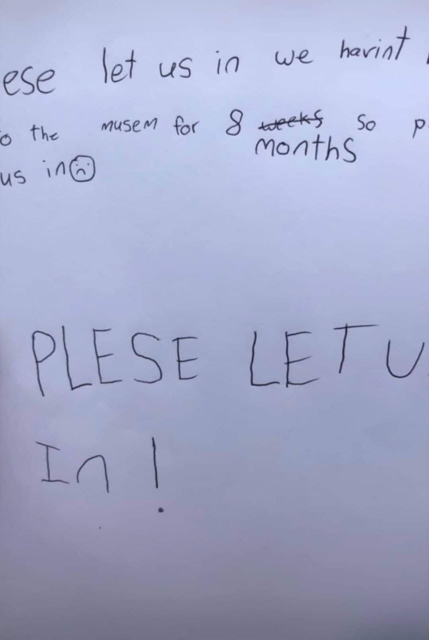 Internal communication quickly labelled the gathering as “protesters” but there was no protest, simply a bunch of kids really wanting to see their favourite exhibits.