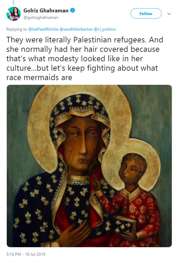 They were literally NOT Palestinian refugees Golriz, do you know why? It’s because the term “Palestinian” literally did not exist at the time, in any sense. It took the Romans another 135 years after Jesus’ death to come up with it to erase the fact that it, Judea, like Mary and Jesus, were JEWISH!